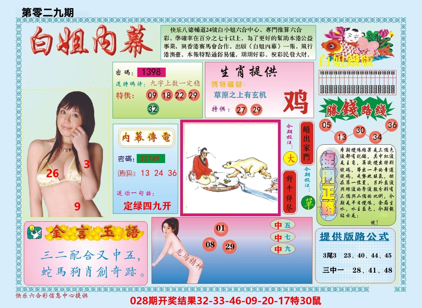 028期⑤肖【羊牛猴虎鼠】开 鼠30 准